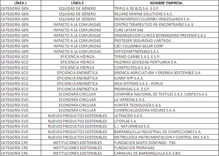 Esta estrategia de la Cámara de Comercio de Barranquilla incluye las categorías de GEN Bienestar Social, EVO Innovación Sostenible, ECO Producción Responsable y CRE Instituciones Sostenibles.