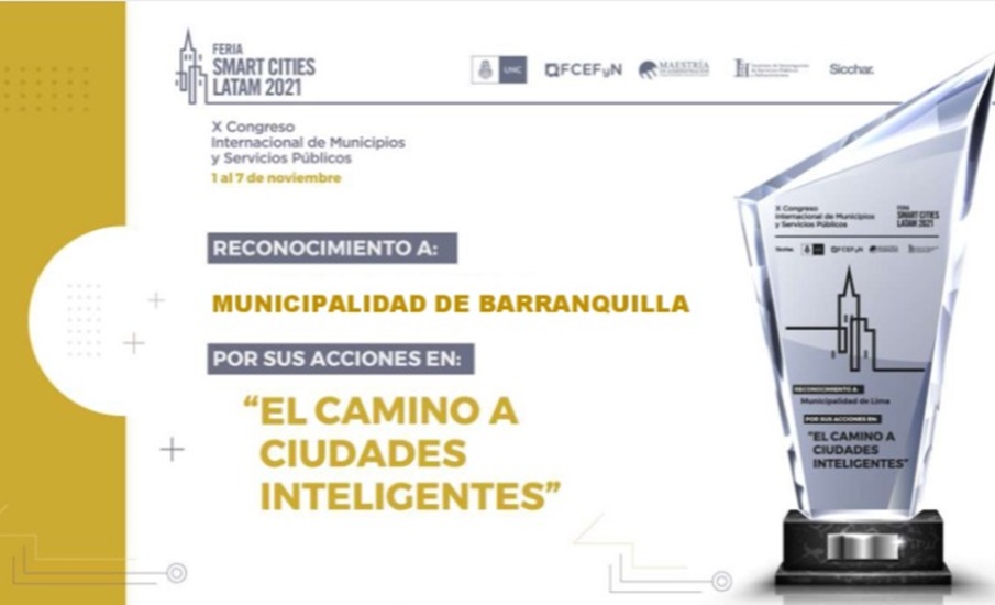 Días atrás, Barranquilla recibió el reconocimiento en la Feria Virtual Smart Cities LATAM 2021, en el marco del X Congreso Internacional de Municipios y Servicios Públicos, el encuentro sobre ciudades y regiones inteligentes más importante de América Latina, por ‘La huella digital del ciudadano en la construcción de una Barranquilla inteligente’, que describe las posibilidades que le ofrece el Distrito al ciudadano para acceder a los servicios institucionales.