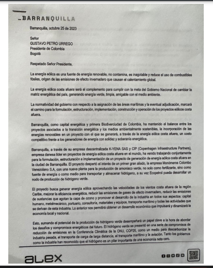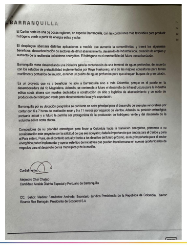 Desde ya, Barranquilla se prepara para seguir creciendo a otro nivel. Como alcalde electo de Barranquilla, Alejandro Char le envió una carta al presidente de la República, Gustavo Petro Urrego, solicitando apoyo para llevar a cabo proyectos que permitirán tener una ciudad más sostenible ambientalmente, socialmente y energéticamente.