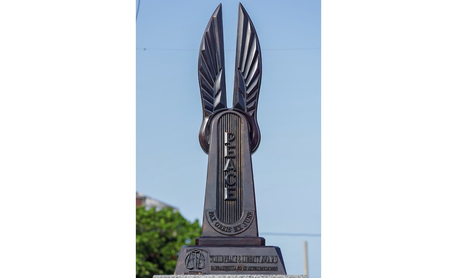 De acuerdo con el artista Yino Márquez, la escultura es una réplica de la estatuilla entregada a los defensores del Estado de Derecho en la edición anterior del Congreso Mundial de Juristas, realizada en Madrid, en el año 2019.