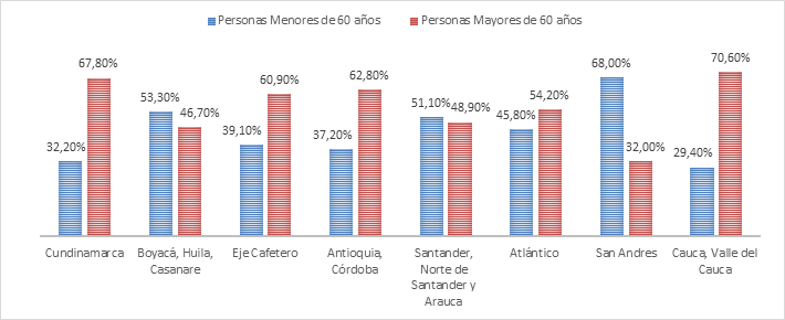De acuerdo con el Dr. Danilo Vallejo, Vicepresidente de Salud de NUEVA EPS, en el año 2018, el número de personas hospitalizadas en el mes de diciembre promedio día fue de 5.959, de los cuales 3.602, fueron mayores de 60 años, lo que representó casi el 60.4% de ocupación de camas hospitalarias a nivel nacional, donde departamentos como Cundinamarca, Antioquia y el Eje Cafetero representan el mayor número de estancias distribuidas de la siguiente manera: