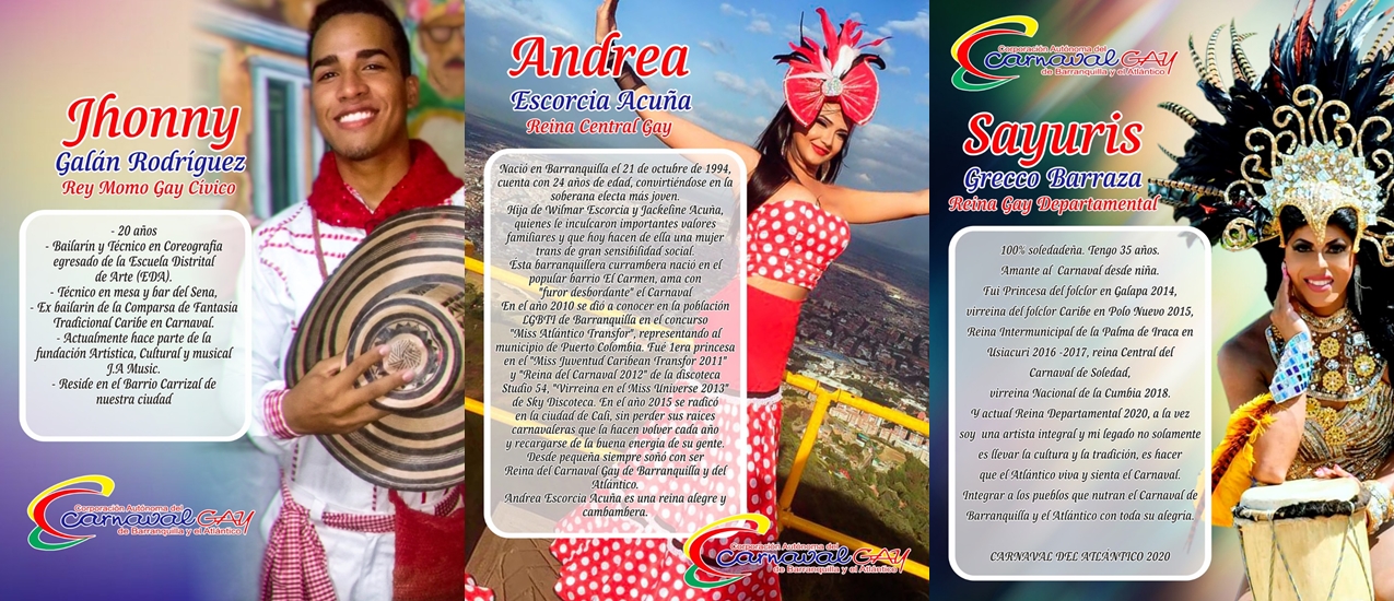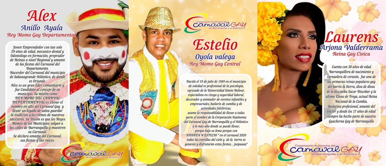 La Corporación Autónoma del Carnaval Gay de Barranquilla y el Atlántico presentó a los Reyes del Carnaval Gay 2020.