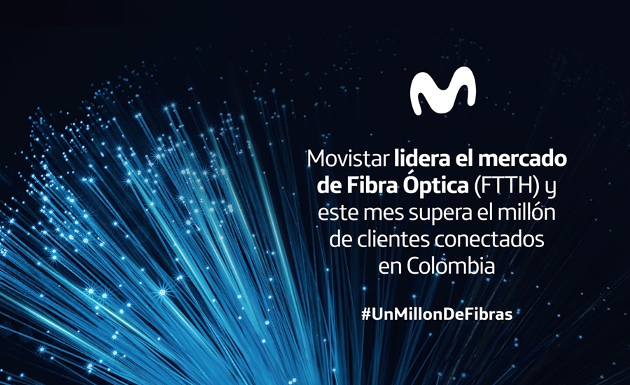 Movistar lidera el mercado de Fibra Óptica (FTTH) y este mes supera el millón de clientes conectados en Colombia