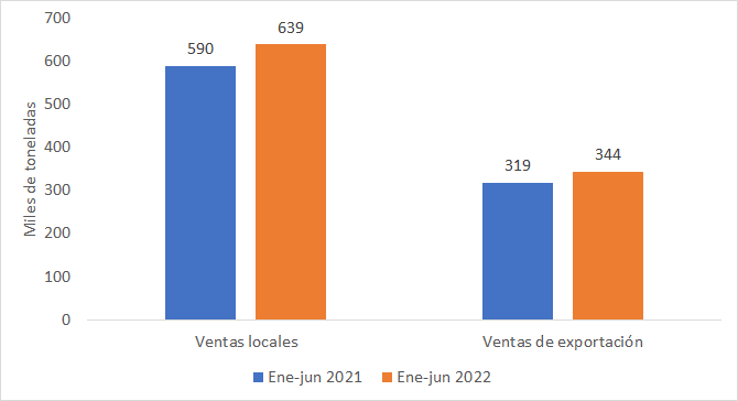 A junio la producción alcanzó 979.685 toneladas, con un aumento de 2,6% frente a las 955.308 toneladas del mismo periodo del año anterior.