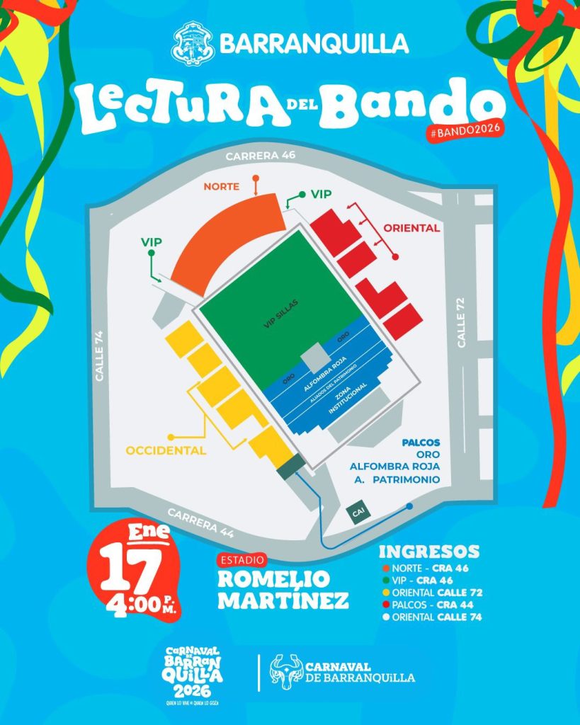Todo está listo para que Barranquilla viva este sábado 17 de enero la Lectura del Bando 2026, el acto que dará inicio oficial al Precarnaval y marca el comienzo de la fiesta cultural más grande de Colombia.